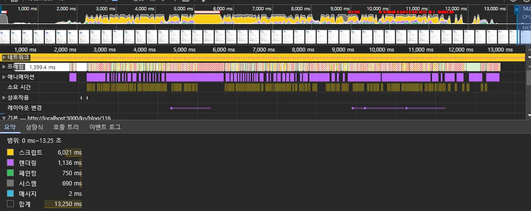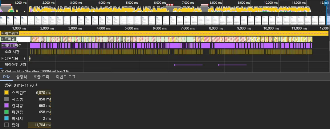 - Rendering time 1,136ms → 668ms significantly decreased.