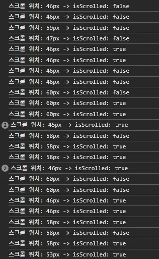Since the scroll status was determined by this state value and the header style was applied accordingly, the header continuously changed styles, leading to a problem.